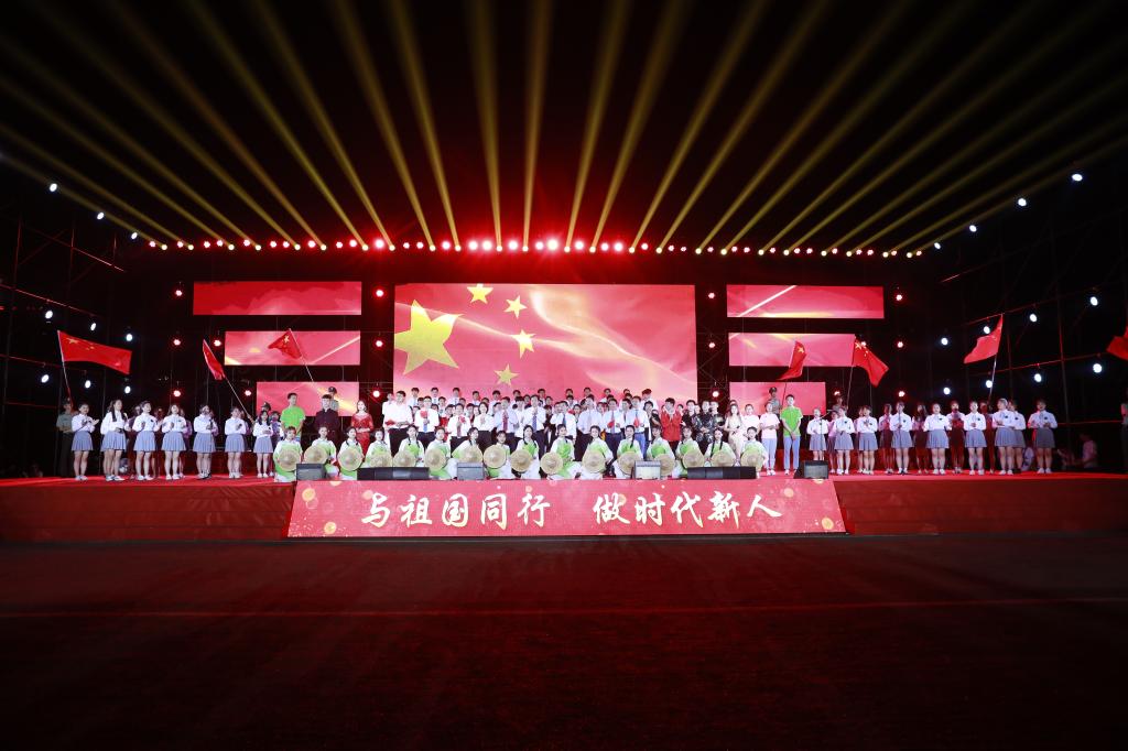 晚会在《我爱你,中国》《歌唱祖国》的大合唱中掀起高潮。全场师生一起共同唱响祝福,提前祝愿伟大的祖国生日快乐,也为新同学们即将开启的丰富多彩的大学生活送上了最热情的祝福。