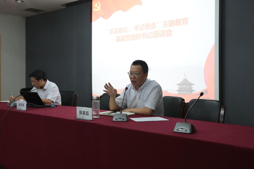 9月16日下午,我校在行政楼第三会议室召开“不忘初心、牢记使命”主题教育基层党组织书记培训会,党委副书记陈泉淼,党委委员、组织部部长麻朝晖,各党总支书记、支部书记参加了会议。会议由麻朝晖主持。