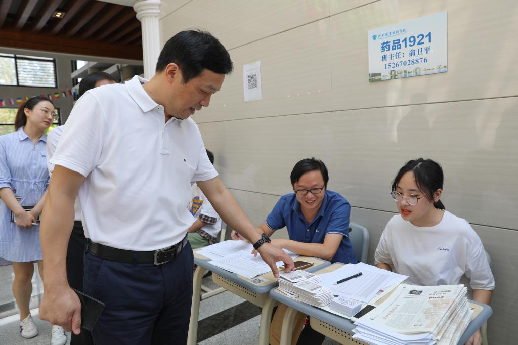 学校党政领导班子成员前往各报到区,查看迎新工作进展,了解新生报到情况;实地走访新宿舍楼看望新生,细心询问新生及家长们关于全新住宿环境的感受,详细了解新生们在入住过程中的碰到的问题。聊家常式的问候拉近了家校之间的距离,为新学子加入杭职院增添了“家”的味道,新生们对学校领导和师生们的热情问候表示由衷感谢。