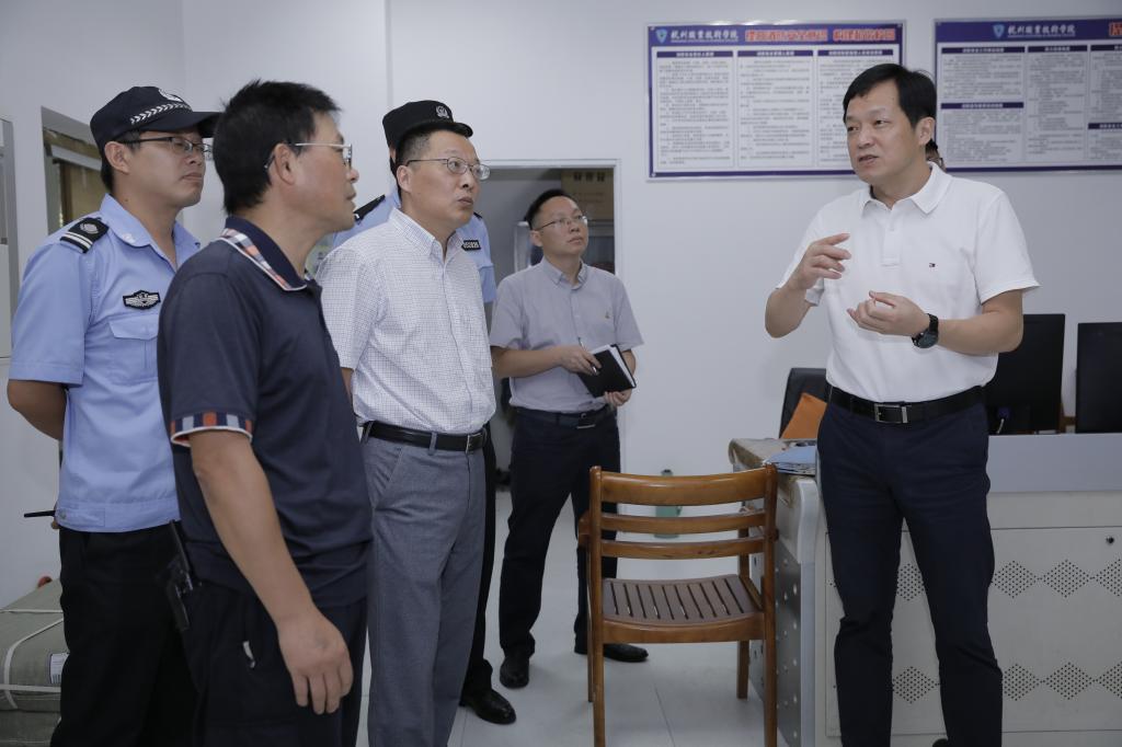9月7日,新学期开学第一天,党委书记金波、党委副书记陈泉淼共同走访各职能部门,实地检查指导开学相关准备工作。党政办、党委宣传部等相关人员陪同。