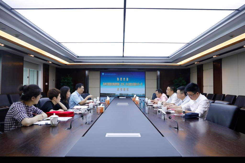 双方在行政楼第一会议室进行了座谈交流,楼晓春对胡小川的到来表示欢迎,并简要介绍了我校的办学理念、专业设置、办学特色和办学成就。胡小川对于我校极具特色的跨界合作模式给予了高度赞赏,并就杭州日报报业集团做了具体介绍,他表示杭报的发展理念与杭职院非常契合,都是针对“杭”字做文章,并且真正为杭州经济社会发展服务。随后,邹箭峰重点介绍了日本早稻田大学的办学情况、专业设置、师资团队等,双方就中日教育资源对接、中外合作办学项目、非独立法人中外合作办学机构、学生访学(游学)项目、非遗文化输出等方面展开了热烈讨论,并达成了初步合作意向。
