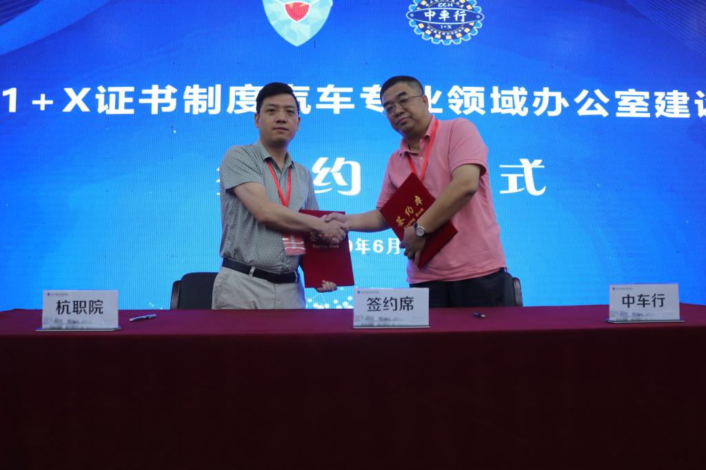 我校党委书记金波在致辞中谈到,“1+X”证书制度试点建设是贯彻落实《国家职业教育改革实施方案》和全国教育大会精神,加快提升职业教育质量,提出的一系列针对性很强的改革举措之一;是将“学历证书”与“若干职业技能等级证书”有机衔接,按照高质量发展要求,深化复合型技术技能人才培养培训模式和评价模式改革的重要改革部署和重大制度创新。杭职院作为教育部首批“1+X”职业技能等级证书试点院校,将与北京中车行高新技术有限公司紧密合作,共同开展“1+X”汽车运用与维修(含智能新能源汽车)职业技能等级证书制度全国试点工作,加快教育部“1+X”证书制度试点建设工作在浙江落地落实并取得重要成效,加快构建现代职业教育体系,推动复合型技术技能人才培养,为区域经济社会发展作出更大的贡献!