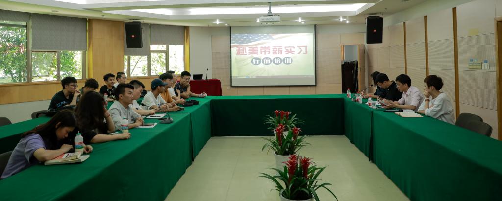 5月22日下午,赴美带薪实习项目行前培训在行政楼第四会议室召开,我校副校长楼晓春、专业建设指导处(教务处)及相关部门负责人共同参与会议。