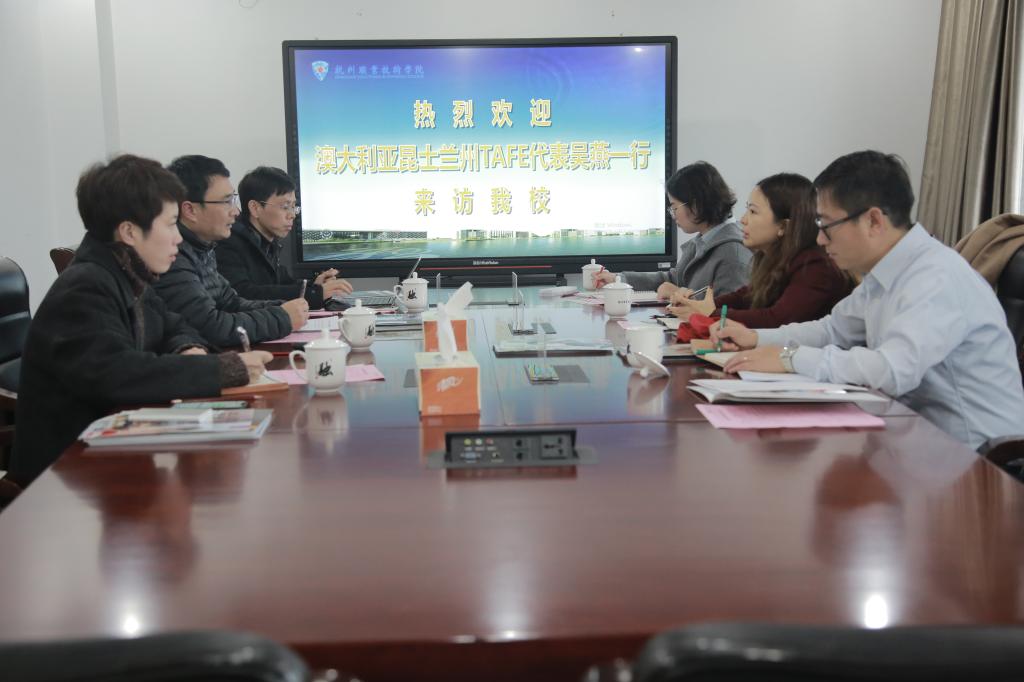 为进一步拓展我校国际化合作办学的发展空间,更好地学习先进的国际化教学理念,227日下午,澳大利亚博昆士兰州职业与技术教育学院、澳大利亚昆士兰政府负责中国区项目合作主任吴燕访问我校。我校党副校长楼晓春,专业建设指导处(教务处)副处长童国通及相关部门负责人参与接待。
