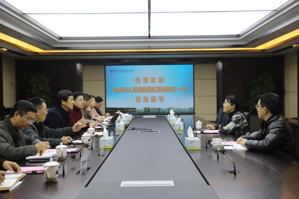 陈红英感谢学校一直以来严格落实市委市政府要求,扎实推进工作,服务杭州发展。她对学校取得的成绩和未来的发展规划表示了认可,希望“杭职院的明天会更美好”。陈红英对学校建设和发展提出了三项要求:一是要系统思考和谋划如何更好服务于城市发展的中心工作;二是要围绕城市新的发展领域、发展平台、发展格局,在有机对接上下足功夫;三是要加大对“高职名校”建设工作的宣传。