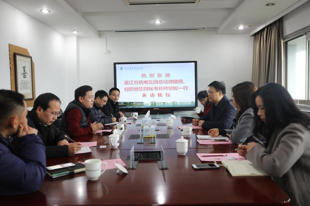 13日上午,浙江省机电集团总经理助理、省职教集团秘书长叶健松一行4人来访我校。我校校长贾文胜、副校长楼晓春,党政办、专业建设指导处、继续教育学院相关负责人参与接待。