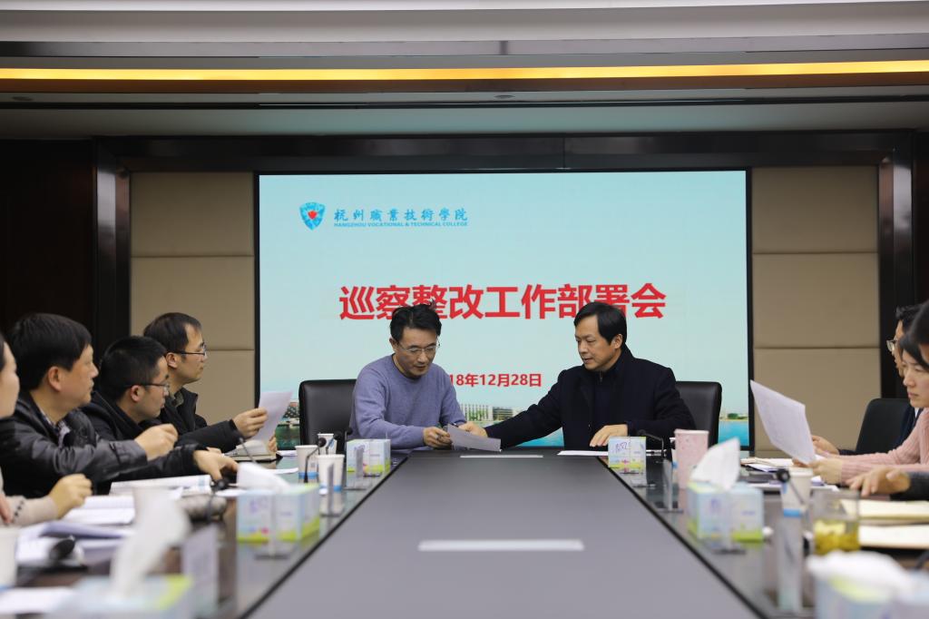 12月28日下午,学校巡察整改工作部署会在行政楼第一会议室召开。学校领导班子成员和各部门、二级学院主要负责人参加会议。会议由党委副书记陈泉淼主持。