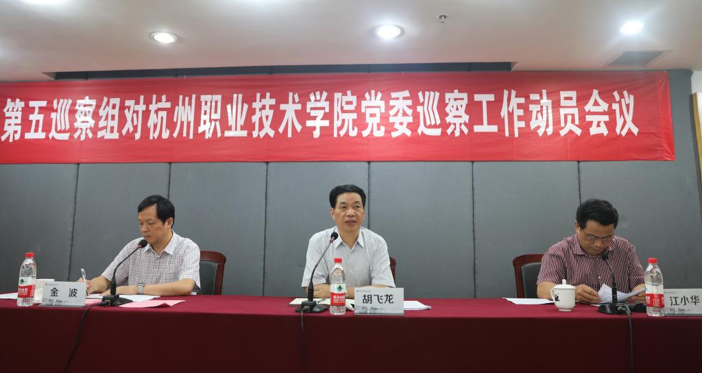 根据市委统一部署,9月11日下午,市委第五巡察组对杭州职业技术学院党委巡察工作动员会议召开。市委第五巡察组组长江小华就即将开展的巡察工作作了动员讲话,市委巡察工作办公室主任胡飞龙就配合做好巡察工作提出要求,杭州职业技术学院党委书记金波主持会议并作表态发言。