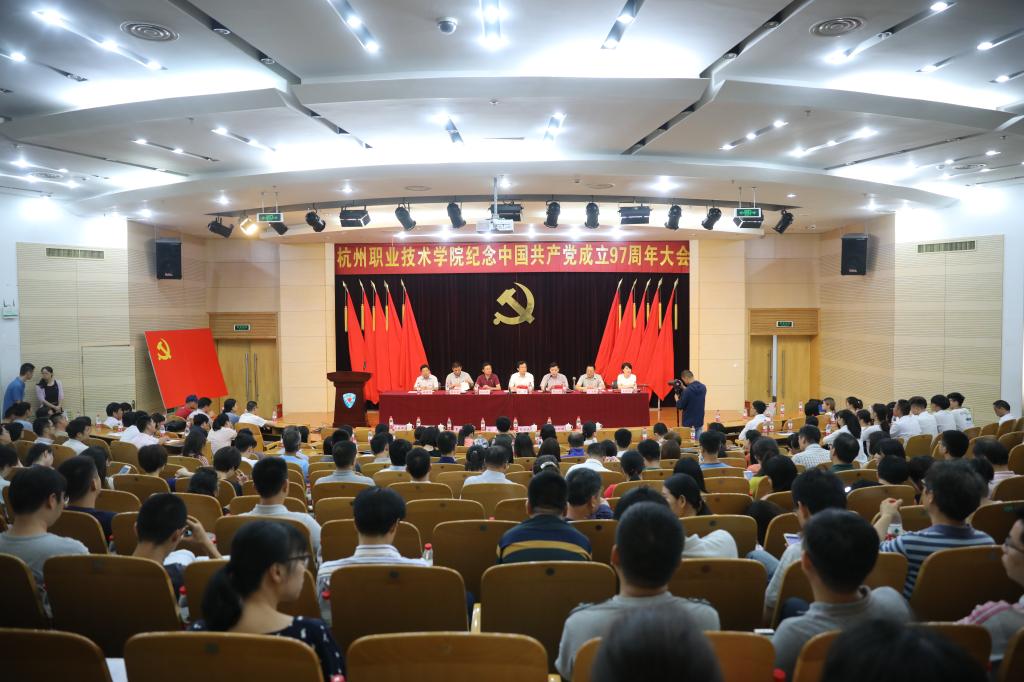 6月29日,杭州职业技术学院隆重召开纪念中国共产党成立97周年大会,对2017年为学校发展做出积极贡献的先进集体和优秀个人进行表彰。校党委领导班子成员,全体教工党员、学生党员代表400余人参加大会。会议由校党委副书记、校长贾文胜主持。