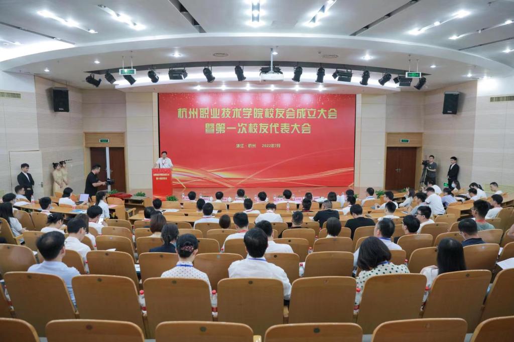 五湖四海回母校聚共识,善湖之畔向未来谋发展。7月2日,杭州职业技术学院校友会成立大会暨第一次校友代表大会在行政楼报告厅隆重召开。本次会议采用线上直播与线下会议相结合的形式进行,200余名校友欢聚一堂,共同见证杭职校友会的成立。学校全体领导班子成员,兄弟院校嘉宾,二级学院领导班子成员,职能部门负责人以及师生代表出席。会议由副校级领导张洪宪主持。