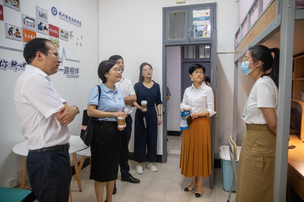 9月27日,浙江省教育厅高校“一站式”学生社区建设督导组来我校实地调研“一站式”学生社区建设情况。督导组由浙江树人大学、杭州师范大学、中国美术学院、浙江旅游职业学院和绍兴文理学院五所高校学生工作部负责人组成,党委副书记陈泉淼参加了接待座谈会,学工部部长江平陪同各专家实地调研。