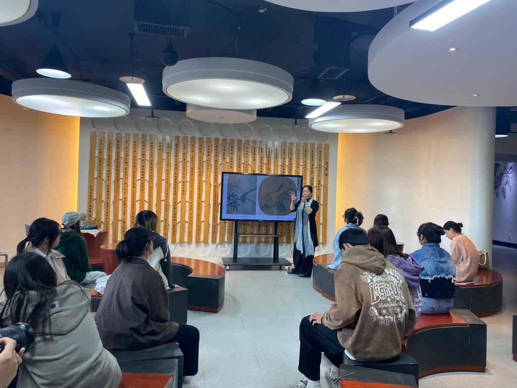 杭州刺绣大师班上,金家虹为在场师生讲述了汉唐兴起、南宋极盛杭州刺绣中的宋韵传承,宗室南迁,许多精于刺绣的能工巧匠来到杭州,杭绣迎来成熟发展。唐代时,杭绣开始以艺术欣赏品的形式出现,到现在,杭绣创作亦需要绘画功底作支撑。金大师向在场师生展示了自己的多幅代表作品,其中有不少使用了从宋代发展流传的针法创作的水墨风格作品,目前,杭绣传承的仍然是从宋代发展流传的针法,金家虹说:“用传统的针法,表现现代的新内容,这就是杭绣的传承。”在场师生都纷纷表示十分期待接下去9周的课程中,能进一步感悟杭绣文化,学习杭绣技法,创作杭绣作品,感知指尖上的宋韵风尚。