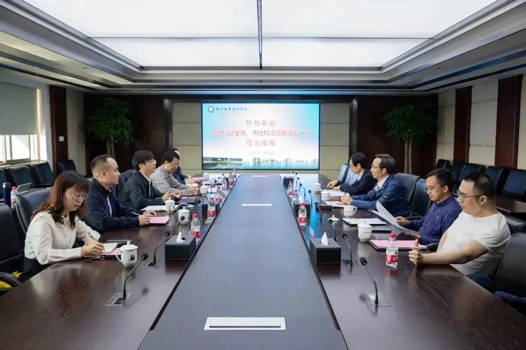 11月10日,杭州市社科联主席、市社科院院长卓超等一行4人莅临杭州职业技术学院,调研市哲学社会科学重点研究基地(现代职业教育研究中心)和培育基地(杭州产教融合研究基地)工作情况。校长徐时清、副校长楼晓春,办公室、发展研究中心、科研处、马克思主义学院等部门相关人员参加调研活动。