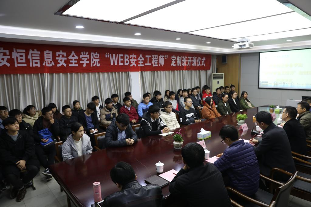 126日下午,安恒信息安全学院“WEB安全工程师”开班仪式在信息工程学院召开。我校校长贾文胜,杭州安恒信息技术有限公司副总裁冯旭杭、网络安全学院副院长孙小平,信息工程学院相关负责人、信息安全与管理专业负责人与骨干教师出席开班仪式。