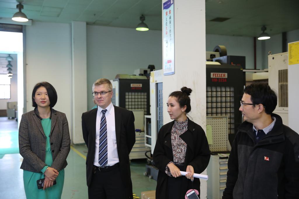 来宾一行首先参观了友嘉机电学院、学校实训中心暨杭州市公共实训基地、达利女装学院和电梯实训基地,实地考察了我校的校企共同体建设、国际化办学以及探索“混合所有制”、“现代学徒制”的具体情况。
