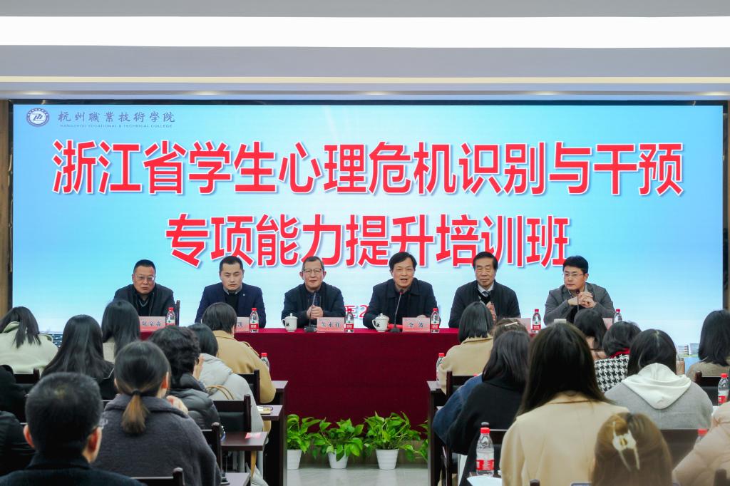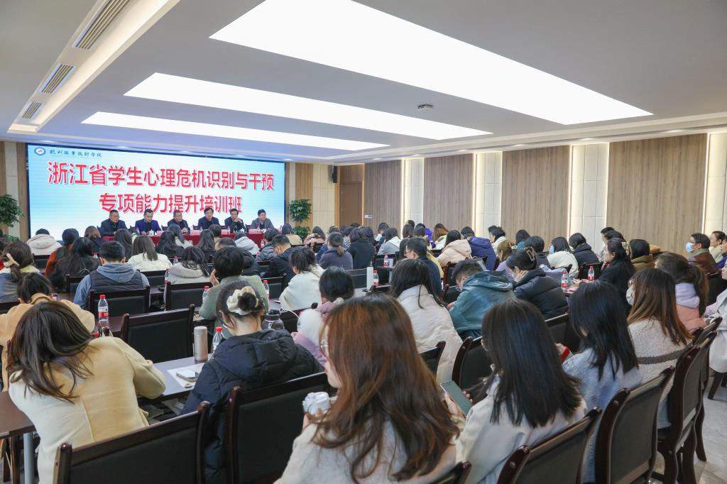 2月27日,浙江省心理危机识别与干预专项能力提升培训班开班仪式在我校明德讲堂举行。本次培训班由浙江省教育厅、浙江省科学技术协会、浙江省精神卫生工作办公室为指导单位,浙江省中小学心理健康教育指导中心、浙江省高校心理危机干预研究中心、浙江省心理卫生协会主办,杭州职业技术学院承办。