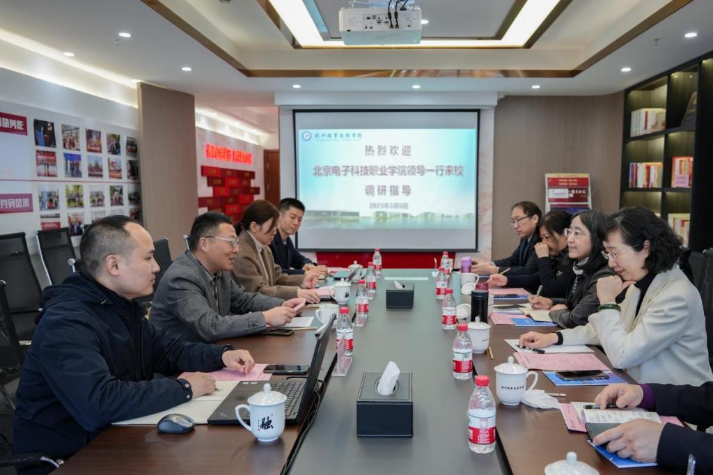 3月6日上午,北京电子科技职业学院党委副书记王玮一行来访我校。校党委副书记陈泉淼,办公室、组织部、人事处相关负责人参与接待。