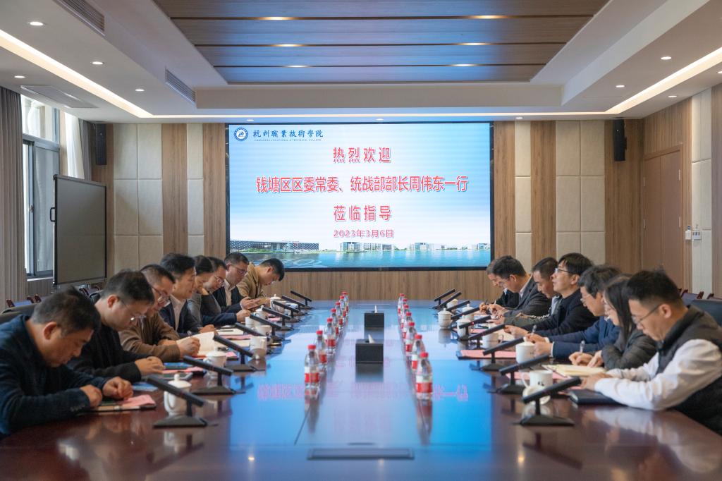 3月6日上午,钱塘区委常委、统战部部长周伟东一行来校走访调研。学校校长徐时清,党委委员、组织部(统战部)部长麻朝晖及相关部门、二级学院负责人参与接待。