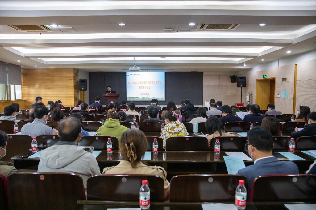 为加强和改进我校基层党组织建设工作,强化大抓党建、重抓党建、严抓党建鲜明导向,促进各级党组织书记全面履行第一责任人职责。3月9日上午,校党委在行政楼117会议室召开2022年度二级党组织书记抓党建工作述职评议会。党委书记金波、校长徐时清等党政班子成员出席会议,各党务部门负责人、党员代表等50余人参加会议。会议由党委委员、组织部部长麻朝晖主持。