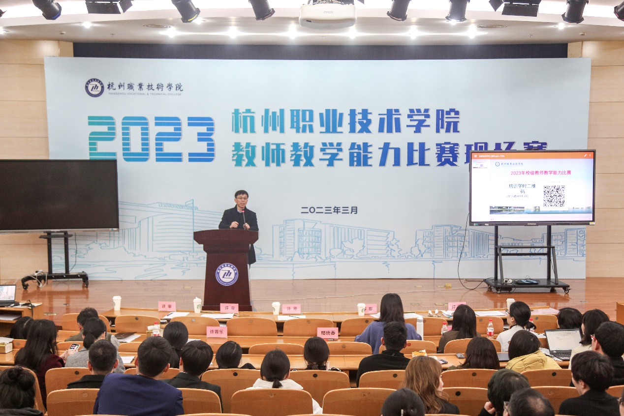 为进一步推进“三教”改革,提高教师教学能力和水平,展示教师教学风采,学校于3月31日举办了2023年校级教师教学能力大赛现场赛,共有11个教学单位16支队伍62名教师参加。副校长楼晓春莅临现场指导观摩。