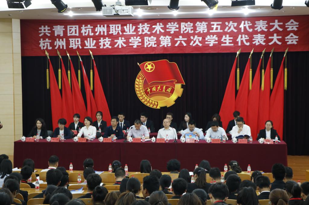 5月24日,共青团杭州职业技术学院第五次代表大会、杭州职业技术学院第六次学生代表大会在行政楼二楼报告厅隆重召开。共青团杭州市委副书记马利阳、杭州团市委学校部部长田臻、下沙经济技术开发区团工委副书记金灵华、杭州市学联驻会主席徐勤孝莅临本次大会。出席会议的还有我校党委书记安蓉泉、副校长张洪宪、纪委书记陈泉淼、党委委员金徐伟、党委委员麻朝晖、各党总支书记、职能部门负责人、老团干代表,以及282名团(学)代表。此外,杭州师范大学、浙江理工大学等16个兄弟单位的团委负责人、学生会主席到会祝贺。会议由第四届团委委员王璐瑜主持。