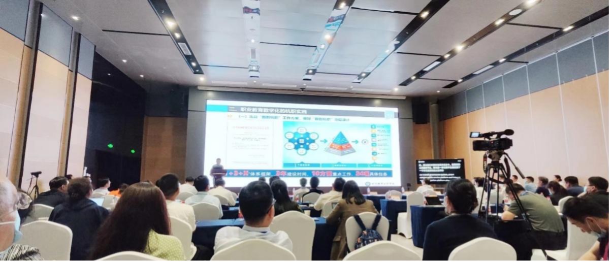 在“双高”建设论坛中,楼晓春作题为《数字化助力学校发展的杭职实践》的经验分享。楼晓春指出,数字化转型不仅是职业教育应对数字化发展与挑战的必然选择,更是职业教育全系统与数字技术深度融合,重塑职业教育新生态的内在需求。他提到十四五期间,学校提出了建设“数智杭职、工匠摇篮”的建设目标,进一步完善数字化建设改革发展的四梁八柱,深化系统设计和总体谋划。学校整体治理体系结构,从“决策指挥、多元参与、制度体系、数智治理、质量改进”5大维度,推动党的全面领导在“制度、治理、智慧”三个维度开展学校内部治理的探索。一是出台“数智杭职”工作方案,做好“数智杭职”顶层设计。二是打造基于数据赋能的“教、管、服、评”一体化平台。三是聚焦专业建设,推进数字化和专业数字化。四是开展资源和课程建设,实施“课堂革命”。