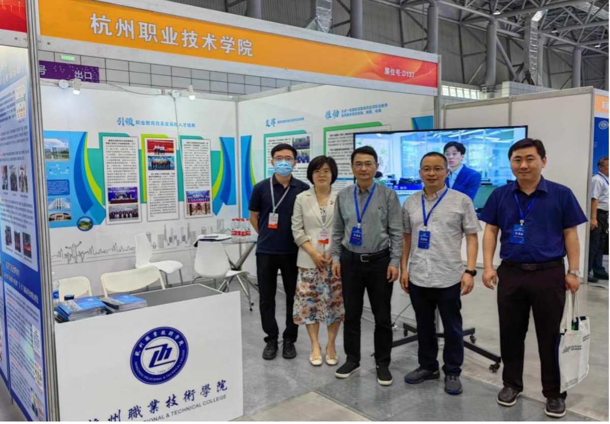 5月19日,副校长楼晓春带领教务处、“双高”办负责人一行6人参加全国高等职业学校校长联席会议在合肥的召开高水平学校与专业群建设研讨会。在会议现场,我校专门设立了“双高”建设成果展区,以视频、展板等多种形式围绕“引领” “支撑”“助推”三个关键词对建设期内取得的重要成果进行了全面展示,吸引众多院校同行和企业代表等前来参观交流。
