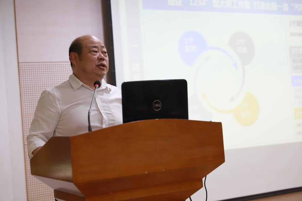 龙艳介绍了浙江省技能大师工作室建设项目背景,她指出要积极发挥高技术领军人才传授先进技能,实现绝活传承方面的带动和辐射作用,通过建设省级技能大师工作室,进一步提升我校教师队伍“双师双能”水平,提高技能人才培养质量,人事处将全力支持工作室的建设工作,实现动态管理,边建边培育,希望工作室全体人员能够将个人发展融入工作室建设中,共同努力,使得整个工作室有所提升,工作室中的每个人都能得到发展。