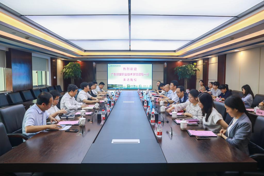 6月8日上午,广东新安职业技术学院校长汤才一行来访我校。校长徐时清、副校长金徐伟、党委组织部(统战部)部长麻朝晖,办公室、人事处、教务处、学工部相关负责人参与接待,双方在行政楼528会议室进行交流座谈。