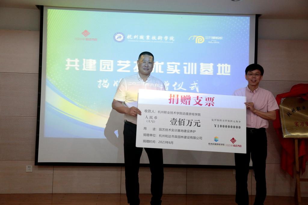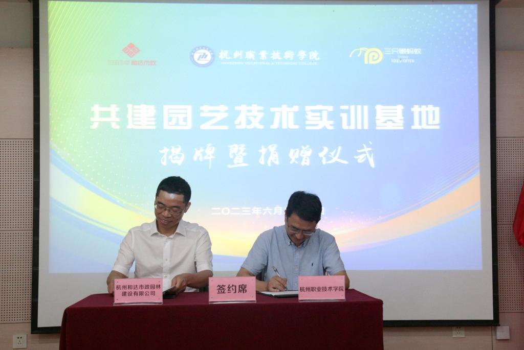 6月26日上午,杭州职业技术学院和杭州和达市政园林建设有限公司共建“园艺技术实训基地”揭牌暨捐赠仪式在行政楼121会议室隆重举行。杭州钱塘新区城市发展集团党委书记、董事长余兴君,城发集团常务副总经理阮顺良,城发集团市政公司总经理赵文勇,浙江三只懒蚂蚁园艺有限公司总经理李正平,杭州职业技术学院副校长楼晓春、教务处处长童国通、动漫游戏学院领导班子、城发集团市政公司工作人员和园艺技术专业教师参加揭牌暨捐赠仪式。仪式由学校动漫游戏学院副院长黄璐主持。
