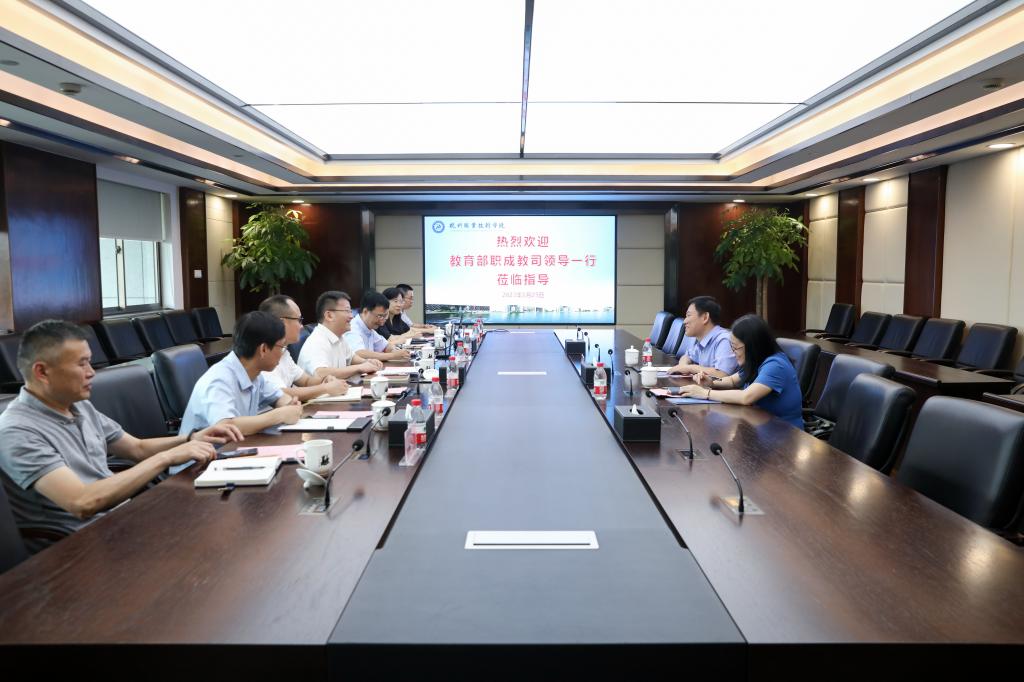 8月25日下午,教育部职成教司综合改革处二级调研员李红东来校调研,浙江省教育厅国际合作与交流处处长蓝晶晶陪同。党委书记陈文岳、副校长楼晓春,办公室、人事处、教务处、国际处、达利女装学院、特种设备学院相关负责人参与接待,双方在行政楼528会议室交流座谈。