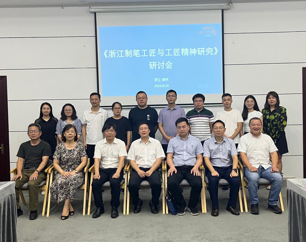 研讨会上,“浙江制笔工匠与工匠精神研究”课题组详细汇报了课题项目概况、研究进展、建设成效等情况。湖州文史馆副馆长姚新兴、湖州市工匠与民俗文化研究会会长徐勇、湖笔制作技艺省级传承人王晓华、湖州市善琏湖笔厂厂长马万飚、湖州善琏永和风笔斋负责人王小卫、湖州千金湖笔有限公司负责人杨松源、王一品斋笔庄办公室主任胡轶岚等专家对课题研究价值和研究成果给予了高度评价,针对课题下一步研究提出了宝贵意见和建议。