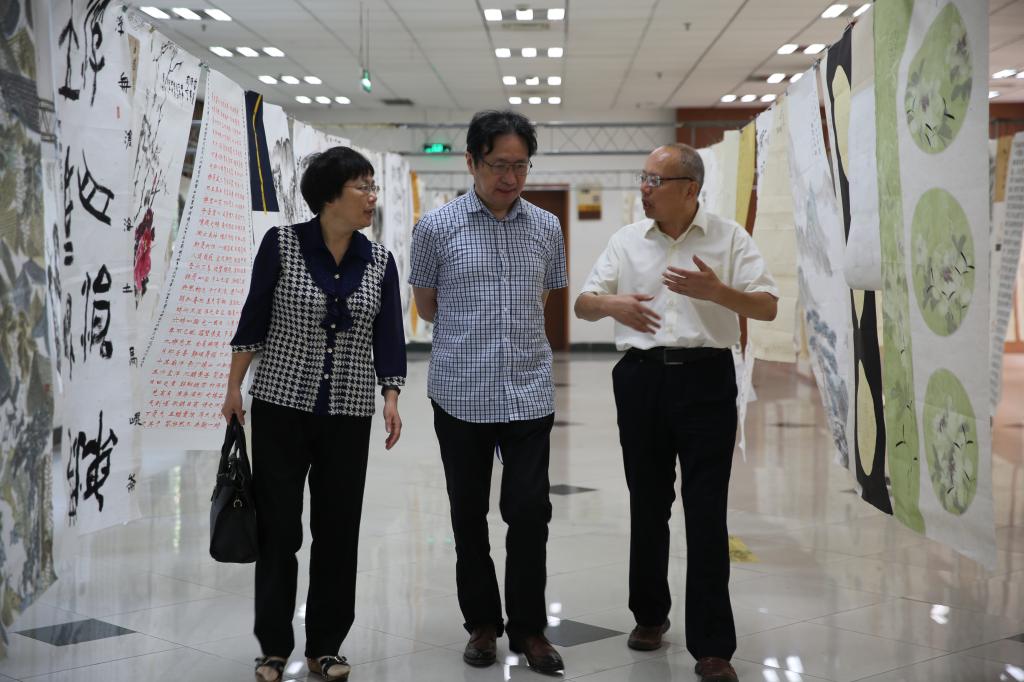 鉴于部分评委们年事已高,学校特地安排了20多名学生志愿者作为助理进行全程陪同。评选过程中,专家评委也向志愿者们讲解了诗书画印作品的文化知识,让同学们大开眼界。