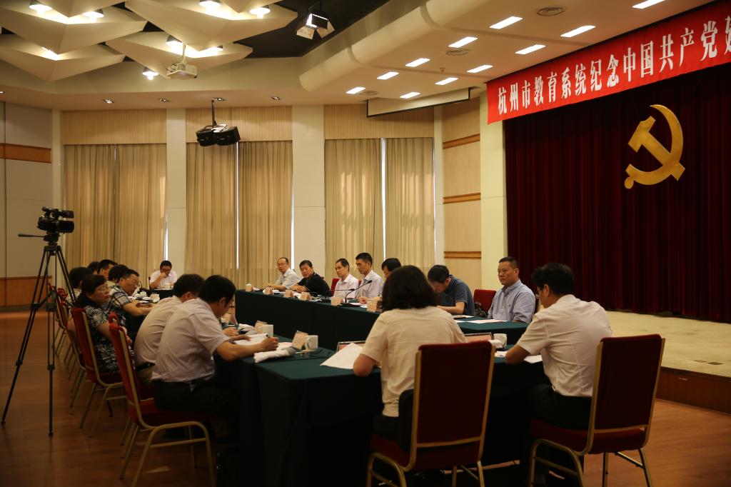 会议表彰了教育系统优秀共产党员,与会党员在会上重温了入党誓词,杭州职业技术学院、浙江育英职业技术学院等5个单位的先进党员代表上台交流发言。