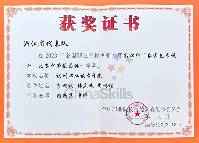 在备受瞩目的全国性职业院校技能竞赛中,来自全国各地的参赛队伍齐聚一堂,动漫设计专业韩立斌、李旭杭和陶鹏程三位同学凭借卓越的实力,荣获“数字艺术设计”国赛团队一等奖,数字媒体艺术设计专业吴美芽同学在“视觉艺术设计”赛项中获得国赛一等奖。动漫游戏学院的指导教师赖新芽、章晔和王启宾因出色的指导表现,荣获“优秀指导教师”荣誉称号。