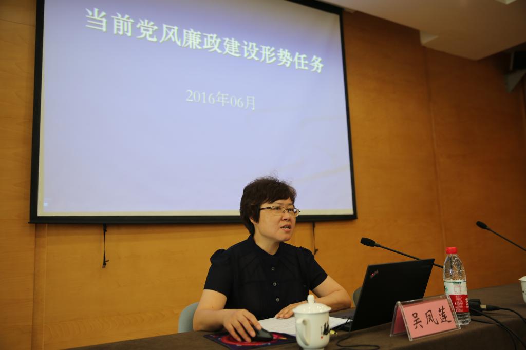 中共杭州市纪委常委、监察局副局长吴凤莲受邀前来,以“当前党风廉政建设形势任务”为题,从形势、任务、要求三大方面入手,给全体处级以上领导干部、重岗重职人员作廉政专题教育。她指出,党中央对于党风廉政建设和反腐败斗争有信心、有决心、有恒心,也在建立健全不敢腐的惩戒机制、不能腐的防范机制、不想腐的保障机制,学校要从管人、管权、管风气三个层面做好党风廉政建设。
