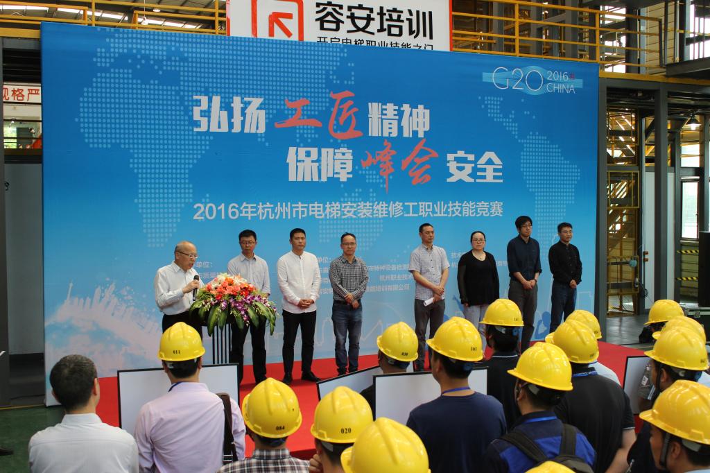 安蓉泉在开幕式上致辞表示,定期举办专业技能大赛是职业技能的有效延伸,是对行业成果的一次大检阅,开展电梯职业技能竞赛,不仅是是电梯界的专业盛会,也是选手们锐意进取、奋发向上、挖潜技能、勇于拼搏风貌的一次大展示。他希望本届杭州市电梯安装维修工职业技能竞赛在“追求工匠精神,保障峰会安全”主题的指引下,成为电梯专业精英切磋技能和展示风采的新平台,成为行业企业沟通交流、共同提升的新起点。