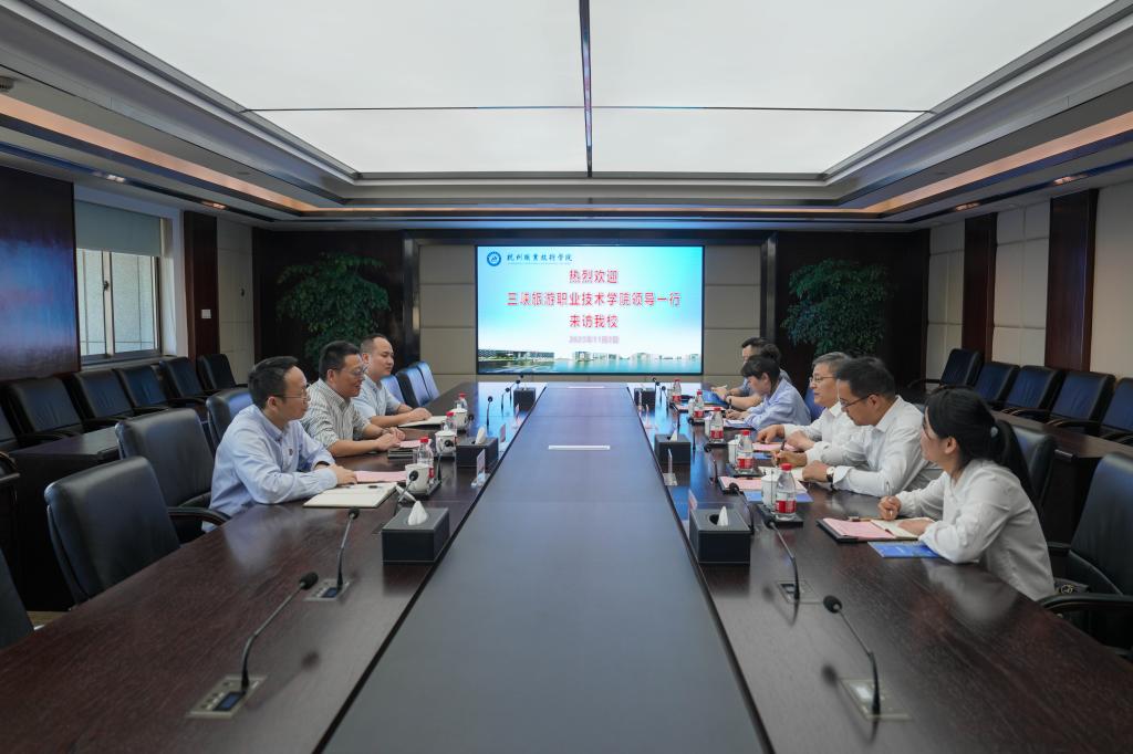 11月2日下午,三峡旅游职业技术学院党委副书记熊杰一行来访我校调研校园文化建设工作,校党委副书记陈泉淼,办公室、宣传部相关负责人参与接待。熊杰一行参观了马克思主义学院、达利女装学院、浙乡非遗馆、校史馆,随后双方在行政楼528会议室进行座谈。