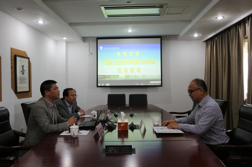 4月29日上午,广西理工职业技术学院执行院长农荣来访我校。我校副校长陈加明及党政办负责人参与接待。