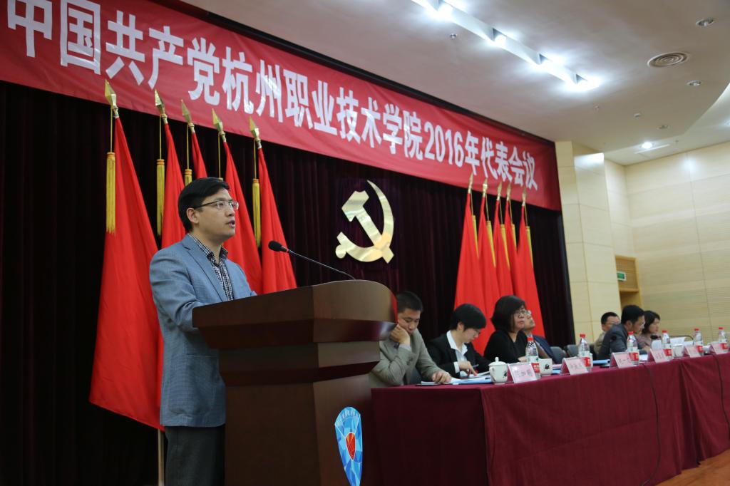 4月20日,中国共产党杭州职业技术学院2016年代表会议在行政楼二楼报告厅召开,我校党委领导班子成员、全体在校党代表、非代表的党员处级干部参加。会议由党委副书记赵一文主持。