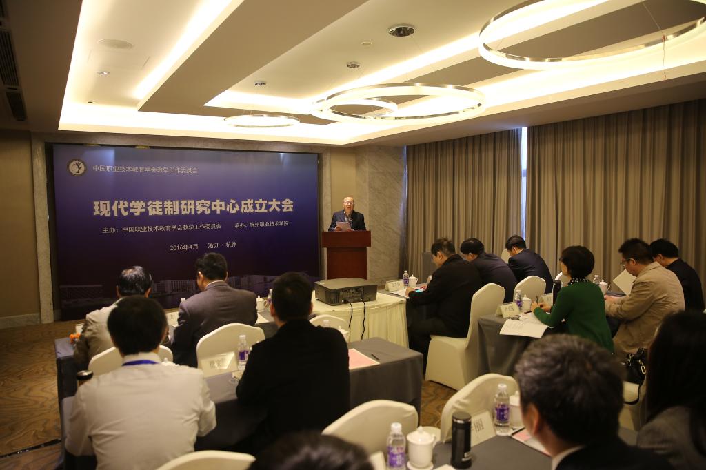据了解,现代学徒制研究中心是隶属中国职教学会教学工作委员会的一个全国性学术研究机构,由中国教育国际交流协会瑞士培训团的19所高职院校联合发起成立,旨在通过开展现代学徒制理论和实践研究,促进高职院校现代学徒制人才培养模式改革,推动形成校企融合、协同育人、同伴互助、创新发展的长效机制,促进高职院校内涵建设和人才培养质量提升。