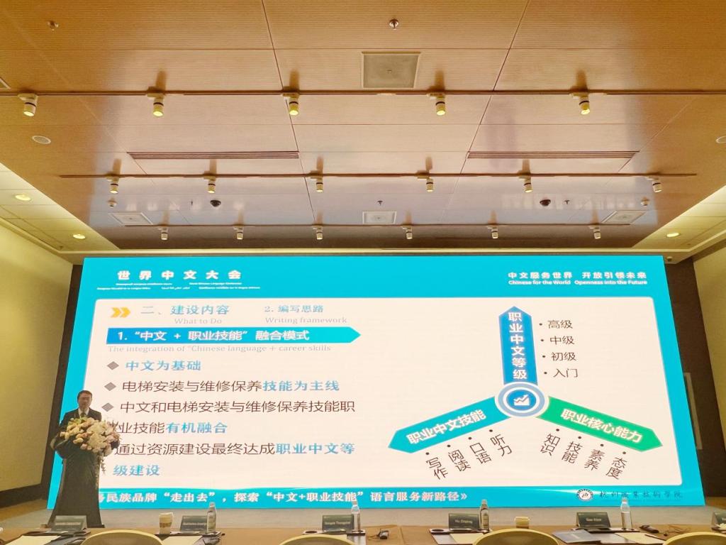 会议期间,我校还参加了大会多场系列活动,在世界汉语教学学会学术年会成果发布活动中,我校参与编写的职通中文系列教材正式发布并展出。