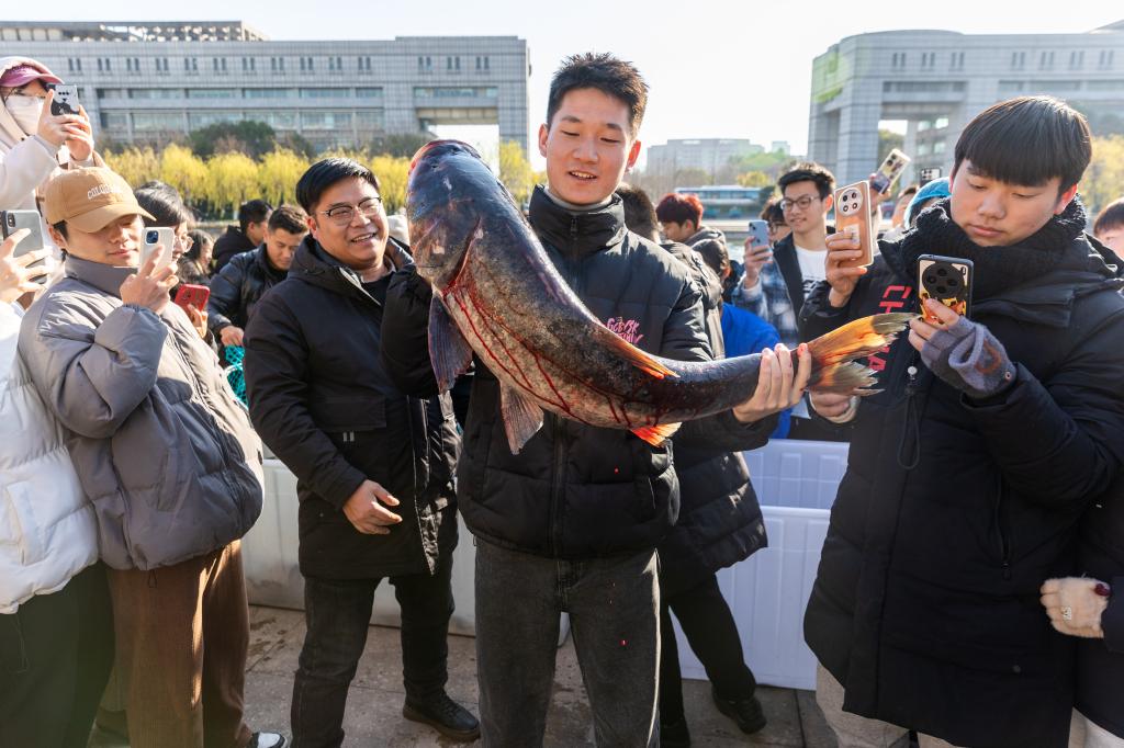 据相关负责人介绍,此次共捕鱼2000余斤,涵盖包头鱼、草鱼、翘嘴、鳊鱼、鲫鱼等品类,最大的一条有近24斤。学校后勤部门将把新鲜捕捞的湖鱼投放到师生餐厅,供全校师生员工免费食用,共享“善湖鱼宴”。
