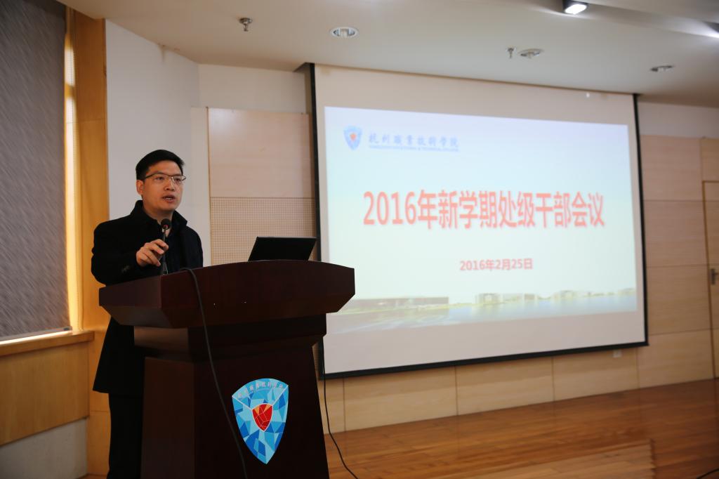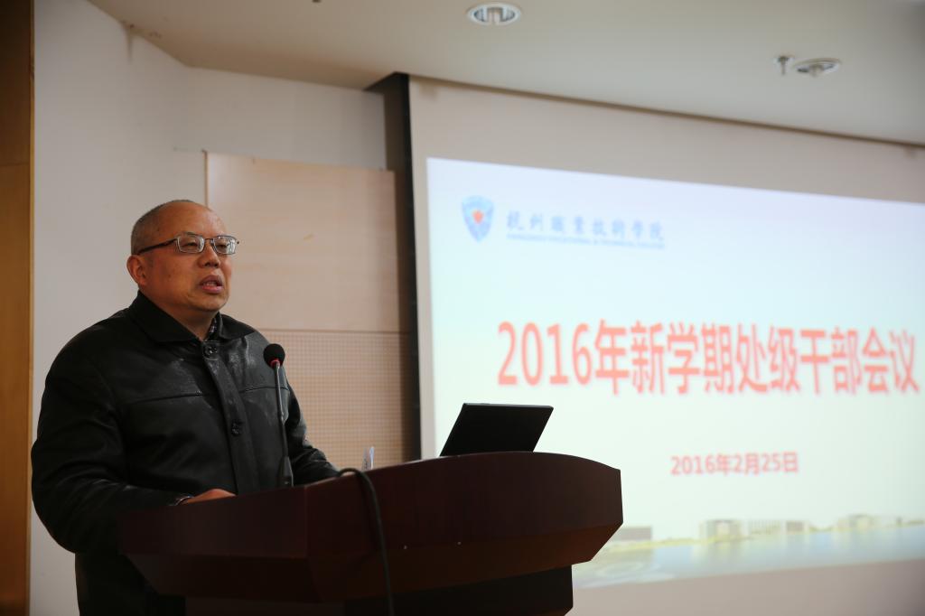 2月25日,学校在行政楼第四会议室召开2016年新学期处级干部会议,部署2016年重点工作,研讨学校“十三五”发展规划。学校全体党政领导班子成员,全体处级干部、资产经营公司负责人,常驻学校的二级学院企业方负责人出席会议。会议由校长贾文胜主持。