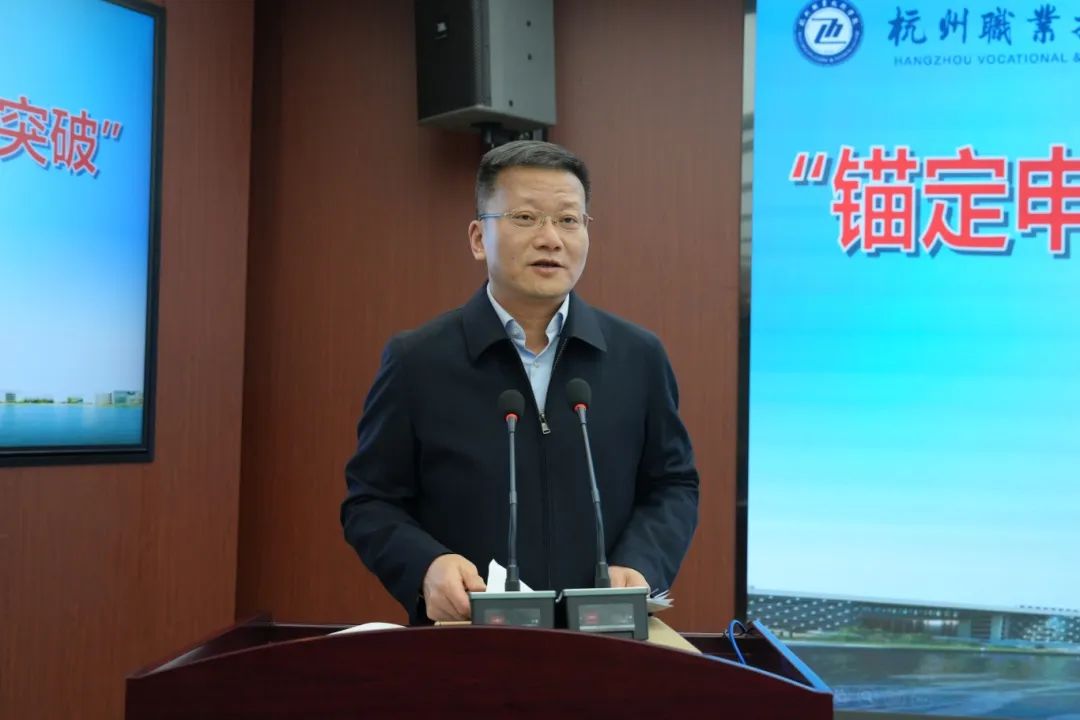 冬日钱塘,乍暖还寒。1月24日,当大多数学校都已处于寒假期间时,一场题为“锚定申本创大、聚力攻坚突破”大讨论启动会在杭职院内火热进行。学校领导班子成员、全体中层以上干部、高职称代表、党外人士代表等近百人参加。大家一道学政策、厘思路、聚合力,着力为学校申本创大目标谋求突破。