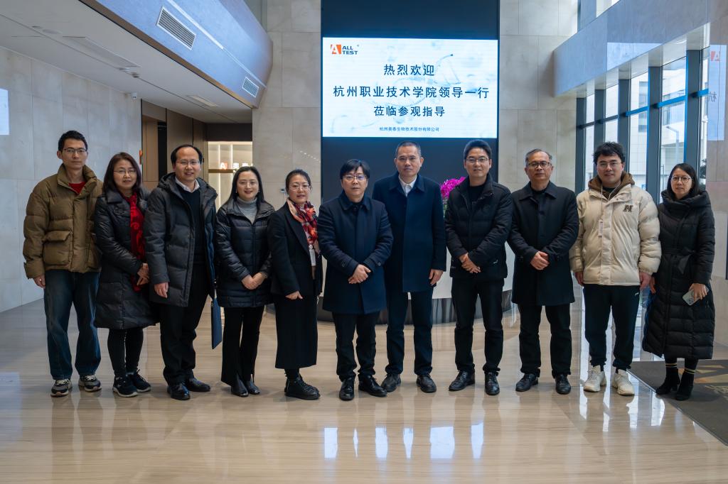 在杭州奥泰生物技术股份有限公司,徐时清一行首先参观了企业产品展览馆,详细了解了公司发展历程和发展前景。随后在企业研发实验室里与生物制药2021级实习生姚秋静进行了交流。