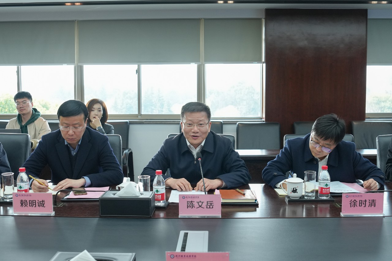 陈文岳全面介绍了学校的办学情况和近年来取得的办学成果,表示杭职院因“杭”而生,坚持以立德树人赋能助力地方经济加快升级发展;锚“职”发展,坚持以科教融汇推动校企合作产教融合迭代升级;质量立“院”,坚持以改革创新推进办学治校高质量高水平发展。他表示,学校将聚焦国家重大战略,强化关键办学能力提升,深化产教融合,推进办学层次高移、优质资源下沉,高质高效建好新安江校区,服务区域经济社会发展,为中国式现代化建设的杭州实践贡献职教力量。