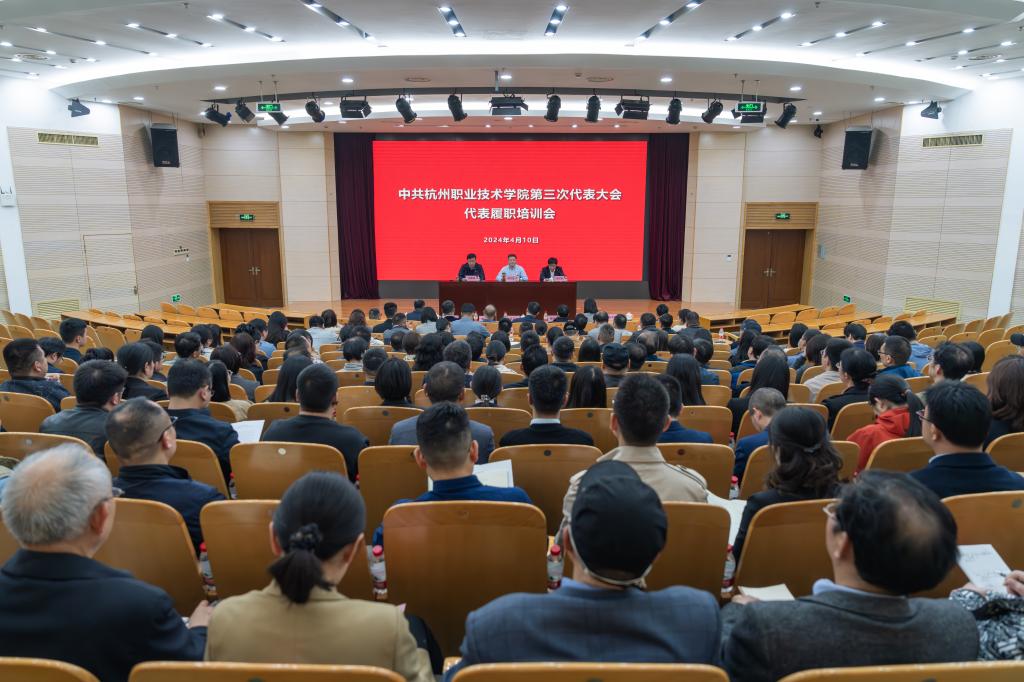 春日杭城,生机盎然。在学校第三次党代会即将召开之际,为进一步增强党代表的政治素养和履职能力,高质量做好党代会各项筹备工作,4月10日下午,学校第三次党代会代表履职培训会在行政楼二楼报告厅召开。学校党政领导班子成员及全体党代表参加会议。会议由党委副书记、校长徐时清主持。