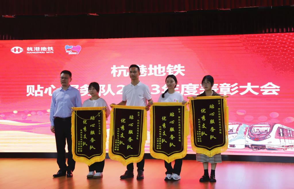 近日,杭港地铁表彰了一批2023年度杭港地铁志愿服务工作突出贡献集体和个人,商贸“小蜜蜂”志愿者服务队获评杭港地铁2023年度贴心服务队。全省总共15所高校参与杭港地铁志愿服务,仅四支队伍获得表彰。李志强老师获评杭港地铁优秀指导老师,胡文瀚等7名同学获评杭港地铁优秀志愿者。