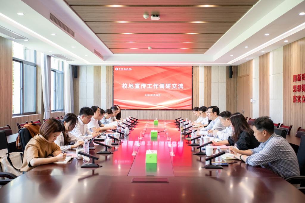 5月28日上午,钱塘新区党工委委员、区委常委、宣传部部长刘国娟来校调研宣传思想文化工作,校党委副书记赖明诚,党委委员、宣传部长张杰等陪同参观和调研座谈。